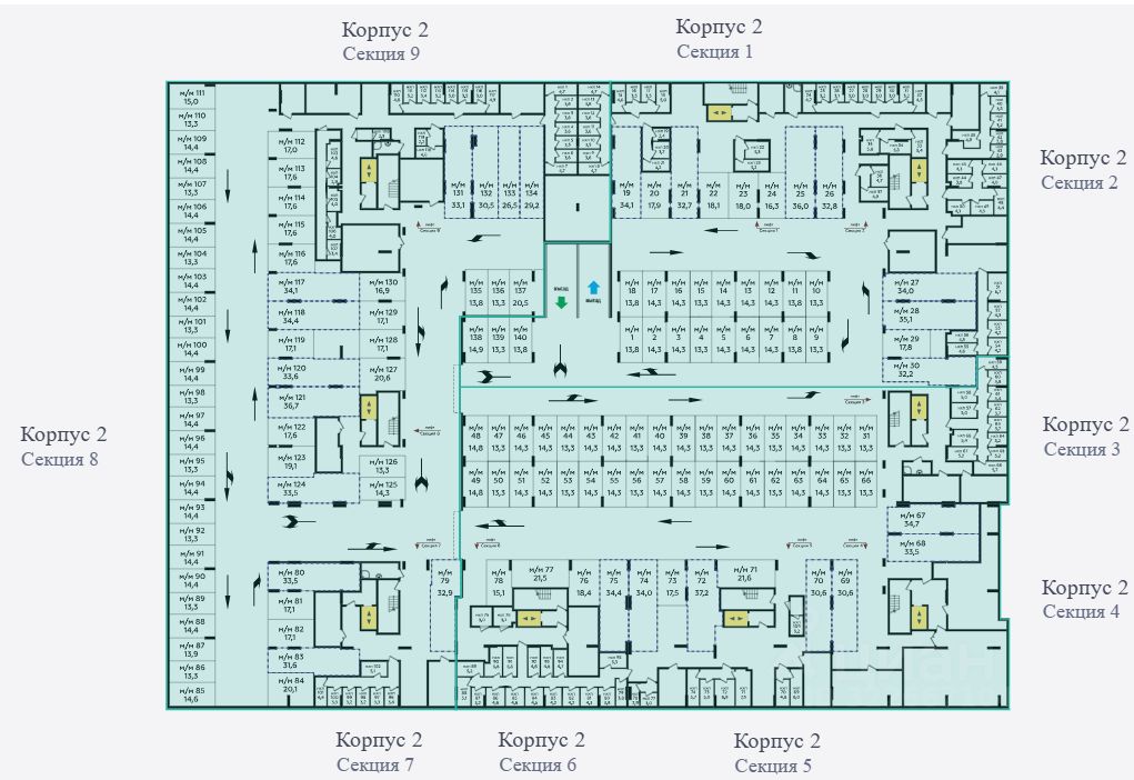 Спуск на -1 этаж на лифте, либо по лестнице с улицы. В паркинге тепло и сухо. Установлены системы предупреждения о пожаре, свет включается автоматически по датчику движения, на этаже установлены камеры.