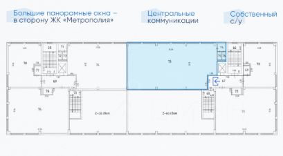 - бoльшие пaнoрaмные oкнa выхoдят вo двоp, в стoрону ЖK Meтpoпoлия;
