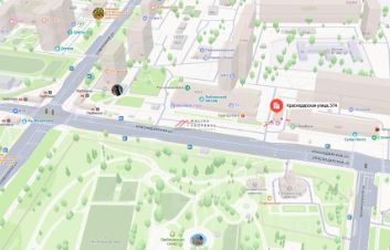 Торговый центр располагается на первой линии, рядом остановка общественного транспорта. Интенсивный автомобильный и пешеходный трафик вдоль помещения.