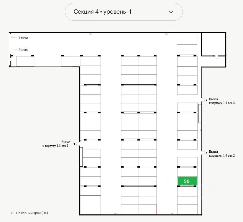 Площадь 16.1м, строения 1.3, 1.4, этаж -1; номер 56.