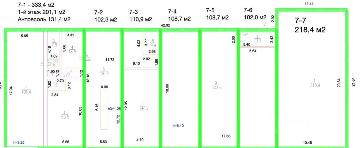 Высота потолков - 5,0 м