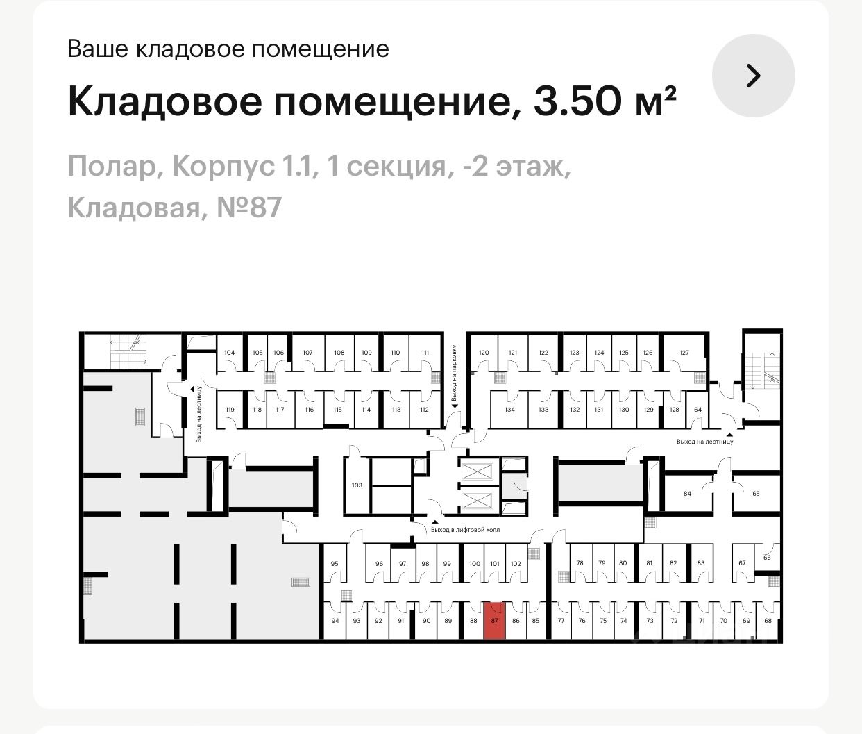 Продается кладовка 3,5 кв.м. в ЖК ПОЛАР секция 1.1 на -2 этаже Сдача октябрь 2025