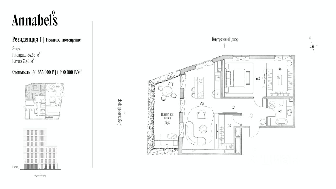 Уникальная резиденция площадью 84 кв. м с приватным патио, окруженным зелёной изгородью, расположена на первом этаже клубного дома Annabels. Патио площадью 20 кв. м идеально подходит как для уединённого отдыха на свежем воздухе, так и для приёма гостей.