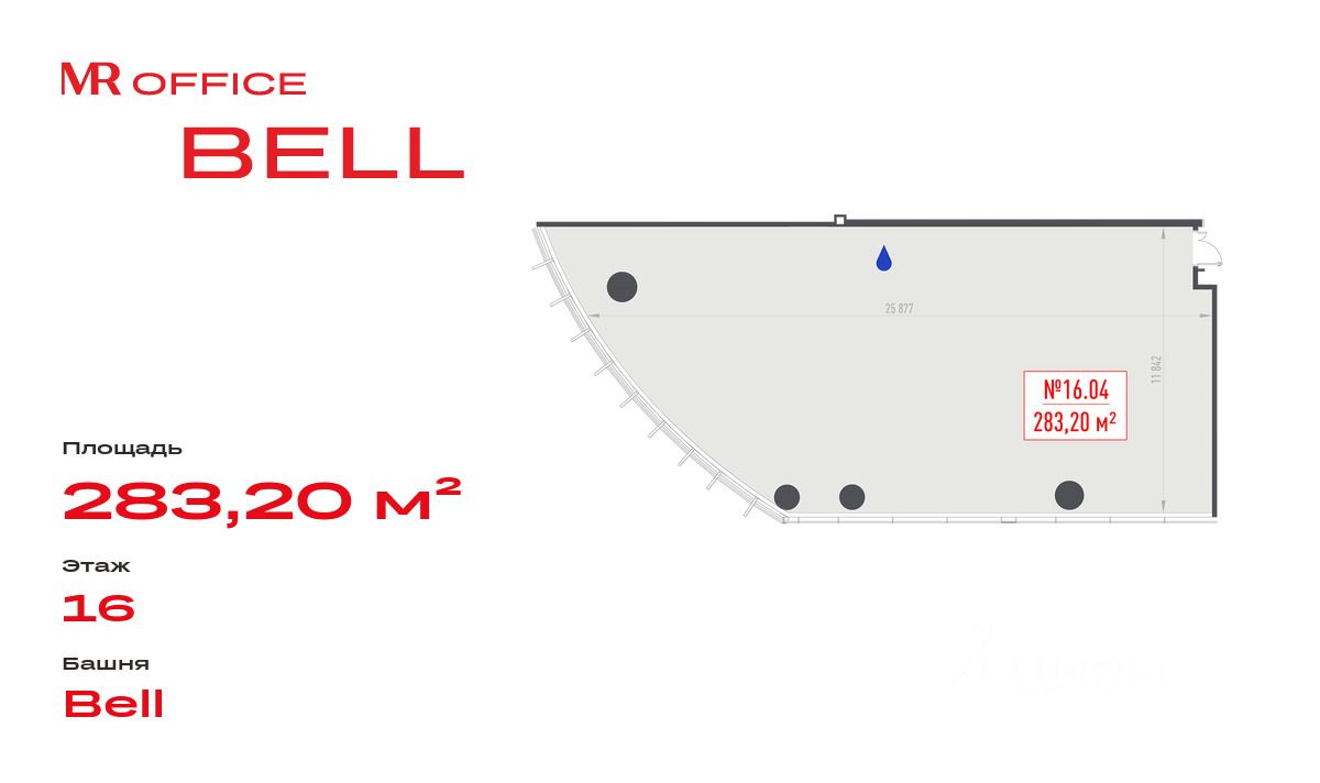 Продается офисное помещение 283.20 м² на 16 этаже в новом небоскребе класса Prime — БЦ BELL на Белорусской от бренда MR Office.