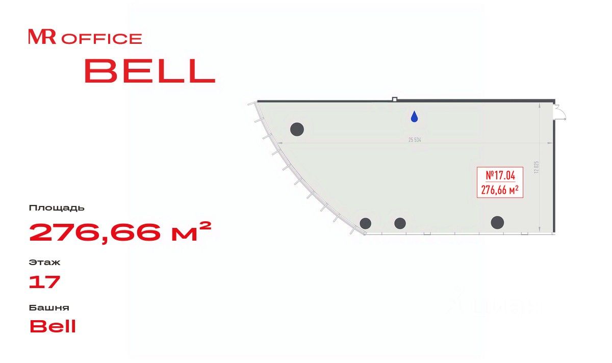 Продается офисное помещение 276.66 м² на 17 этаже в новом небоскребе класса Prime — БЦ BELL на Белорусской от бренда MR Office.