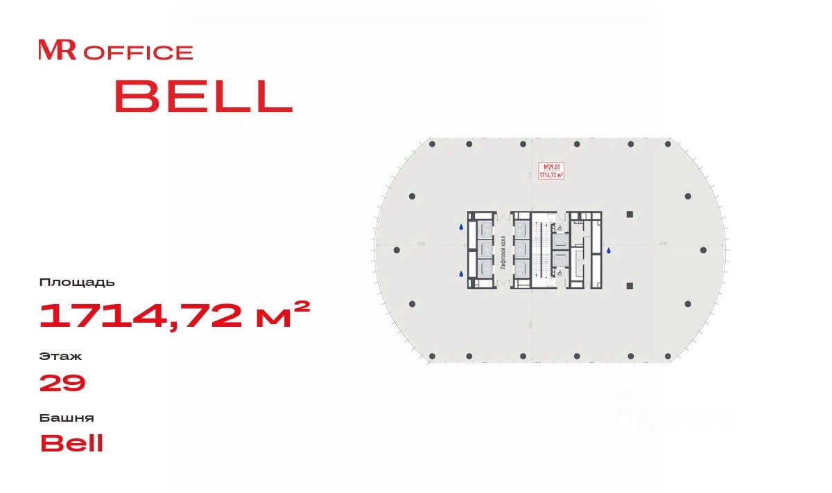 Продается офисное помещение 1714.72 м² на 29 этаже в новом небоскребе класса Prime — БЦ BELL на Белорусской от бренда MR Office.