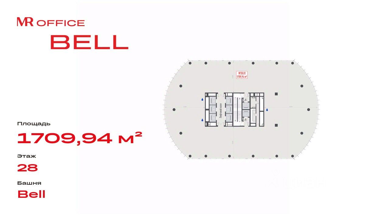 Продается офисное помещение 1709.94 м² на 28 этаже в новом небоскребе класса Prime — БЦ BELL на Белорусской от бренда MR Office.