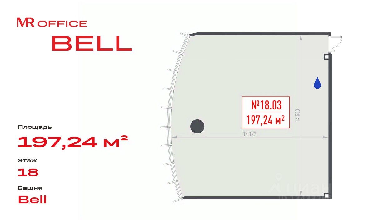 Продается офисное помещение 197.24 м² на 18 этаже в новом небоскребе класса Prime — БЦ BELL на Белорусской от бренда MR Office.
