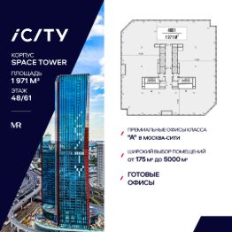 Предлагается офисное помещение, с рассрочкой 0%, площадью 1975.40 м² на 48 этаже в башне "Space Tower" деловых небоскребов класса "А" iCITY. Расположен в Москва-Сити. Проектом предусмотрена уникальная система проветривания помещений. Свободная планировка. Отделка Shell and Core. Высокие потолки 3,75 м и панорамное остекление обеспечивают отличную инсоляцию.