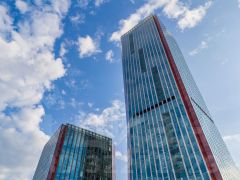 - Стеклянный атриум с подогревом высотой 8 этажей