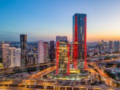 - Стеклянный атриум с подогревом высотой 8 этажей