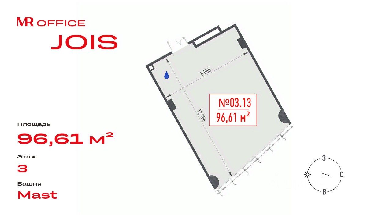 Предлагается офисное помещение 96.61 м² на 3 этаже БЦ Jois.