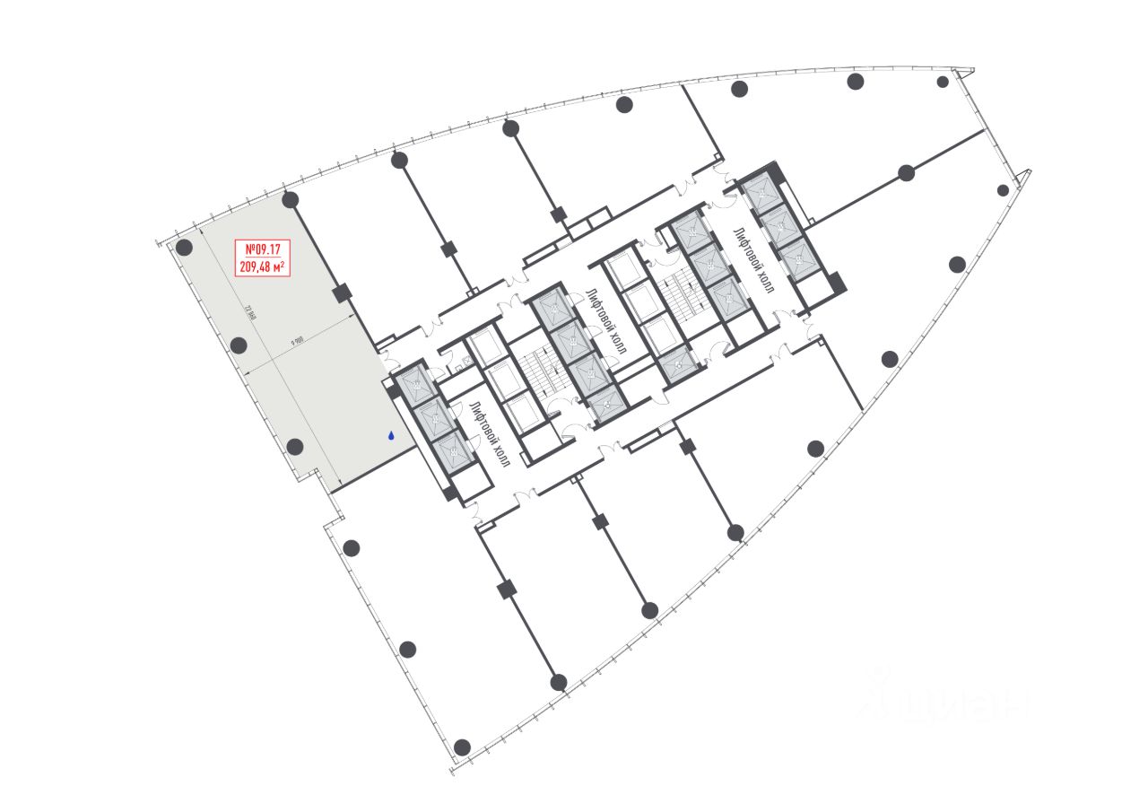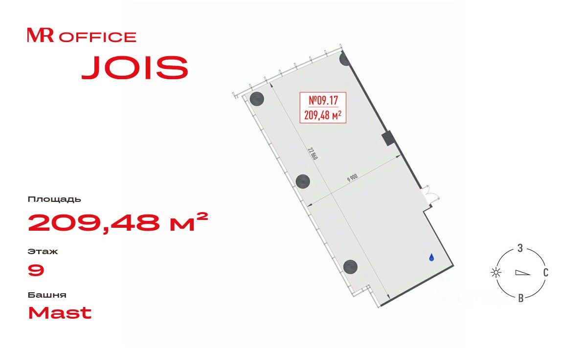 Предлагается офисное помещение 209.48 м² на 9 этаже БЦ Jois.