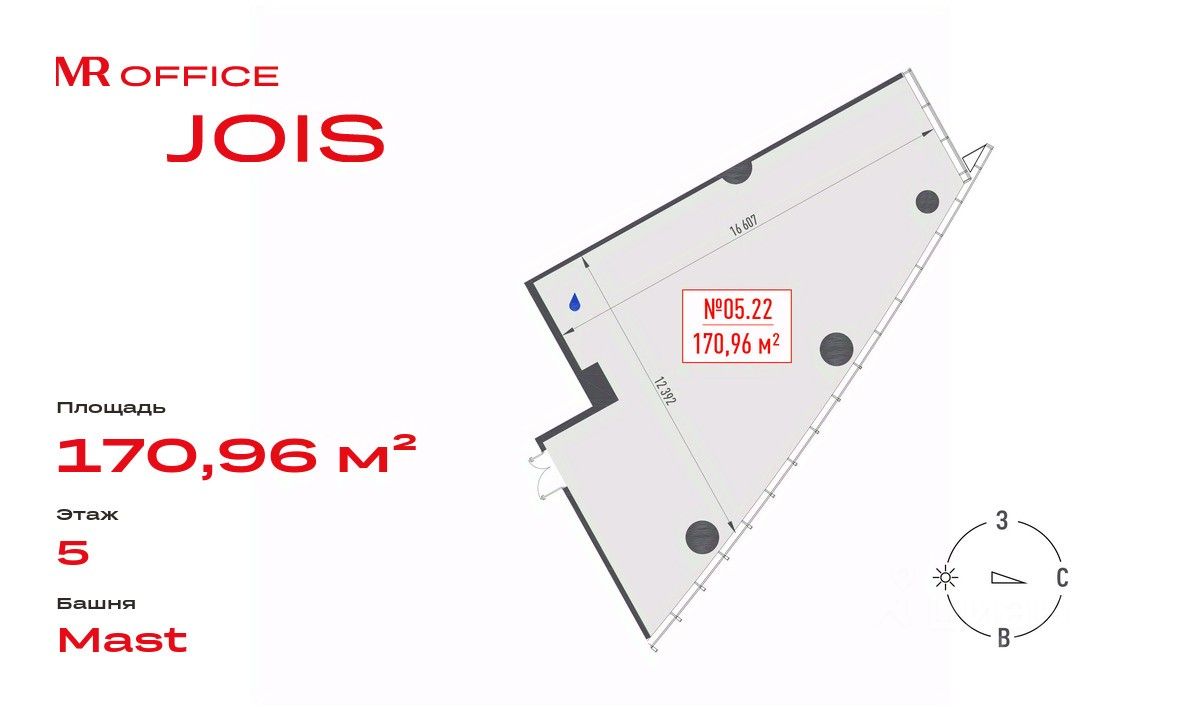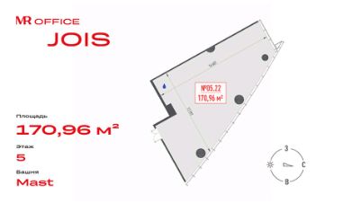 Предлагается офисное помещение 170.96 м² на 5 этаже БЦ Jois.
