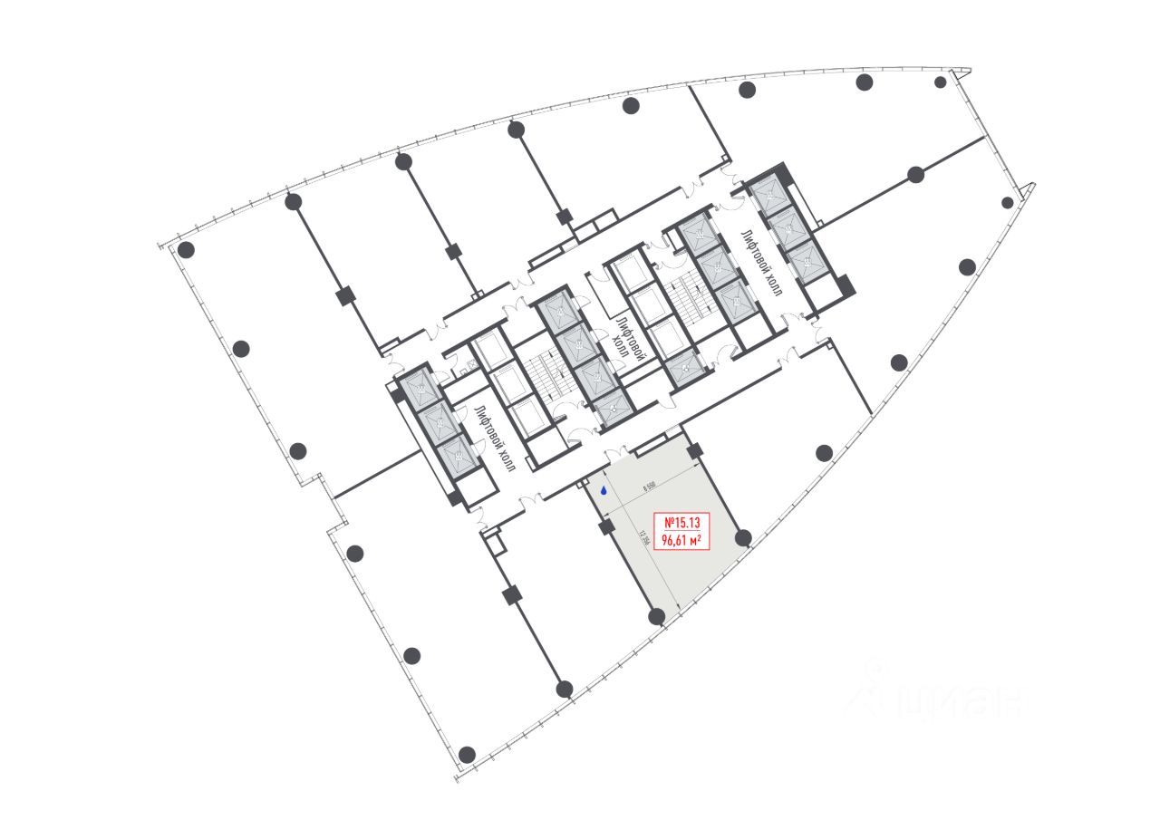 Предлагается офисное помещение 96.61 м² на 15 этаже БЦ Jois.