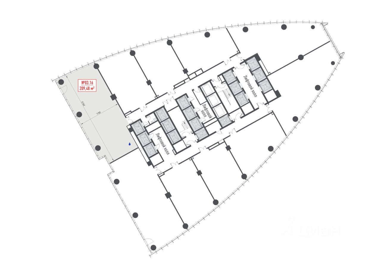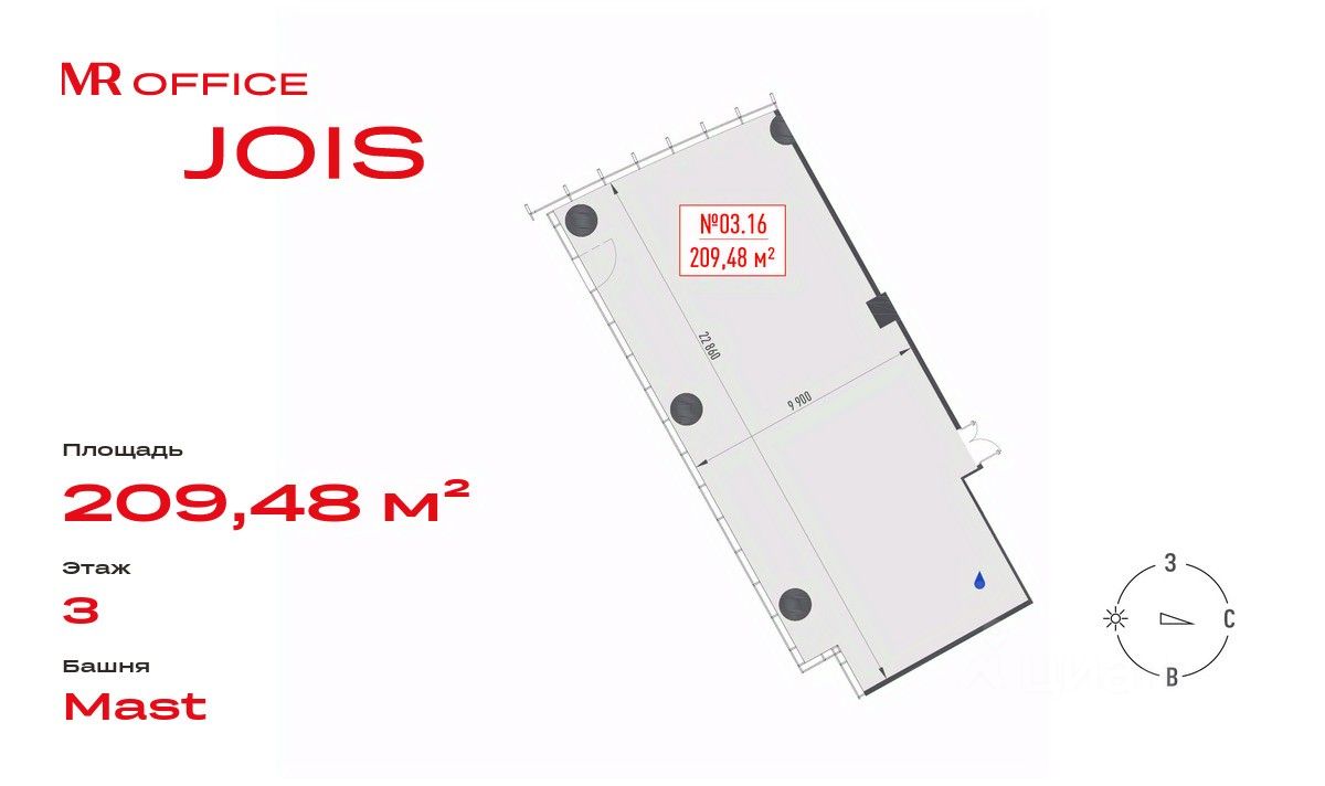 Предлагается офисное помещение 209.48 м² на 3 этаже БЦ Jois.