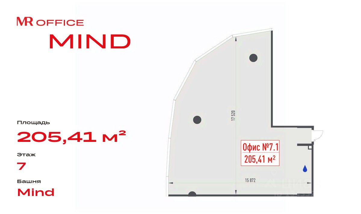 MIND — это 17-этажная офисное здание с современной архитектурой, панорамным остеклением и технологичной инженерией. Помещения предполагают возможность индивидуального зонирования пространства под задачи вашей команды.