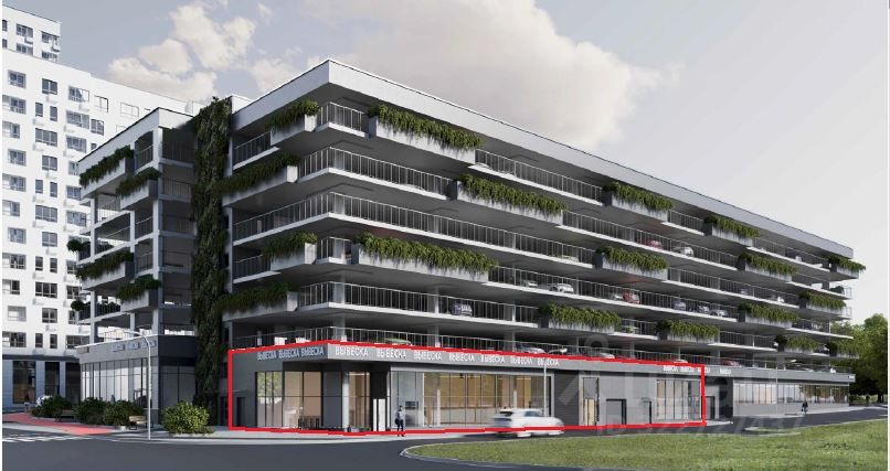 Продажа торгового помещения площадью 486, 9 кв.м на 1-м этаже многоуровнего наземного паркинга в ЖК Прокшино по адресу (точка на карте 55.593582, 37.439955).