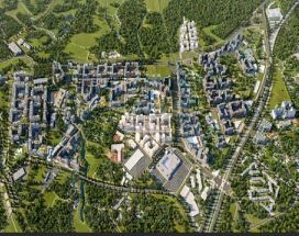 Примененная в районе лучевая концепция застройки обеспечивает шаговую доступность ко всем объектам социальной и коммерческой инфраструктуры. Первые этажи жилых домов отведены под коммерческие помещения, что создает высокий уровень комфорта для жителей и гарантирует их владельцам стабильный доход от аренды.
