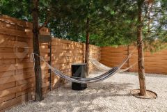 Планировка: кухня-гостиная, санузел, бойлерная, две спальни (две двухспальные кровати+ детская двухъярусная). Дом рассчитан на 8 спальных мест. Окна ПВХ.
