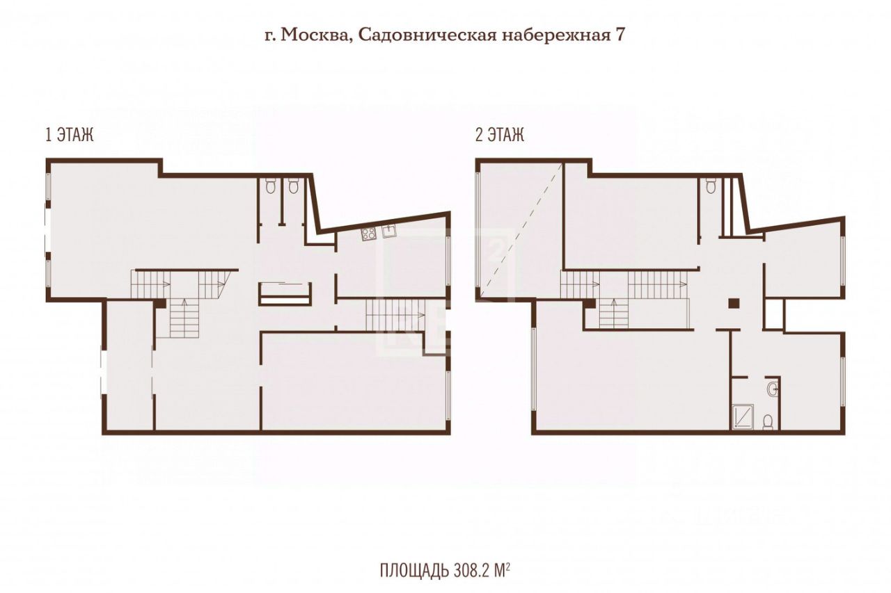 Второй этаж (антресоль): отдельный кабинет 37 м² с видом на набережную, кабинет 19 м² со своим сан узлом и душевой кабиной, кабинет 12 м² , переговорная комната 25 м², сан узел, места для хранения инвентаря.