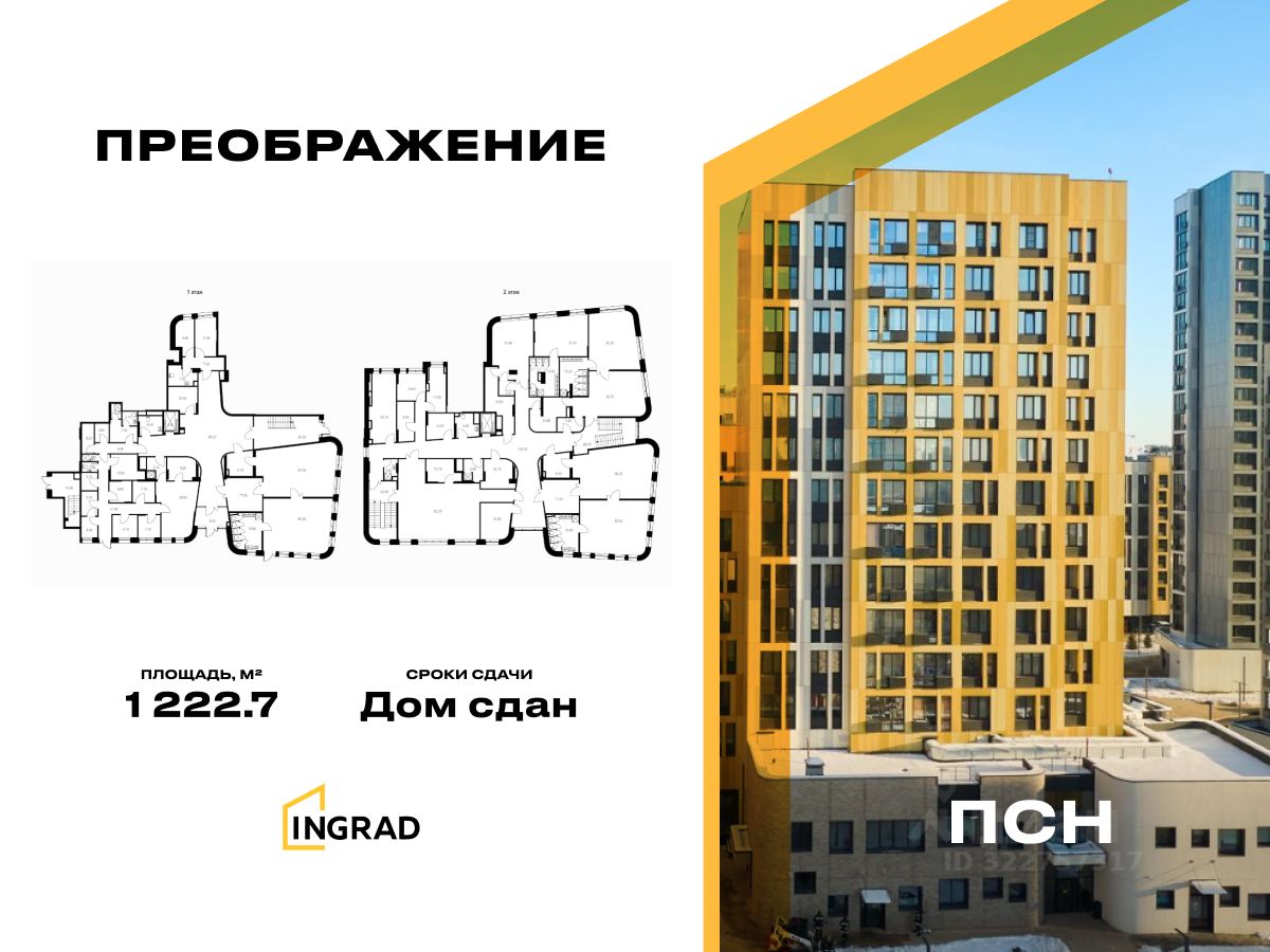 продаётся 2-х этажное встроенно-пристроенное помещение в проекте Преображение. Помещение без отделки. Общая площадь 1222,7 кв.м. Предусмотрена электрическая мощность 155,2 квт. Подходит под медицину, детский сад, офис и любой другой бизнес Продажа по ДКП с НДС