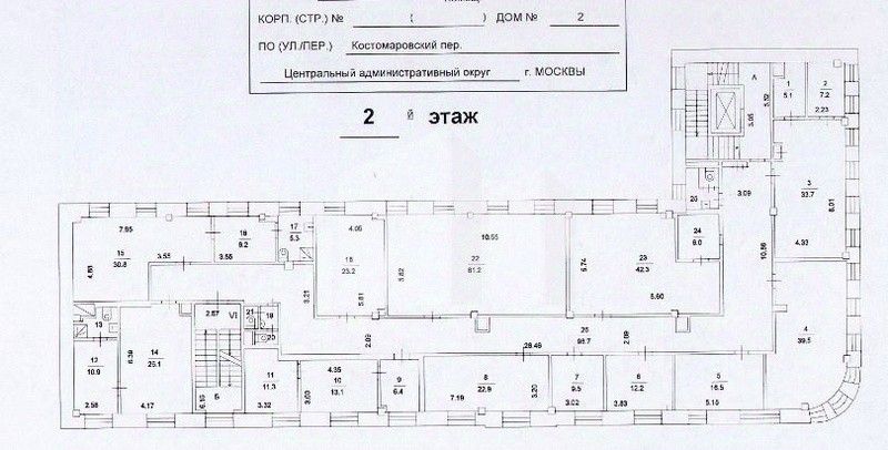 Описание помещения: Общая площадь здания - 2633,9 м2.