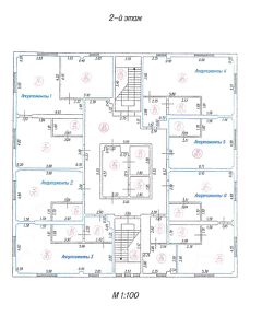 На первом этаже здания предусмотрены помещения под общепит, подсобные помещения, помещения для персонала.