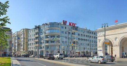 Здание расположено рядом со станцией метро Белорусская. Высокий транспортный и пешеходный трафик.