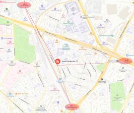Жилой дом расположен в густонаселенном районе. Шаговая доступность от метро. Высокий пешеходный и автомобильный трафик. Удобная транспортная доступность.