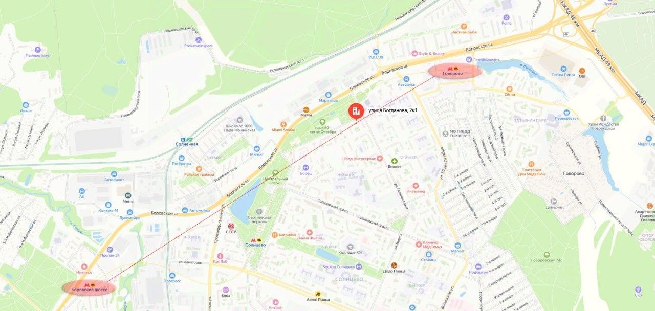 Здание расположено в районе Солнцево Западного административного округа города Москвы. Ближайшая станция метро Говорово. Удобную транспортную доступность обеспечивают Боровское шоссе, улицы 50 лет Октября, Главмосстроя.