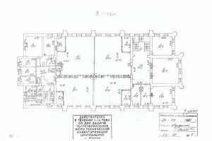 Общая площадь 3299,8 квм. 3 этажа, подвал и чердак. Наземная часть 3073,8 квм, подвал 226 квм. Площадь типового этажа 800 квм. потолки 3,40 м, 3,57 м. Памятник архитектуры.