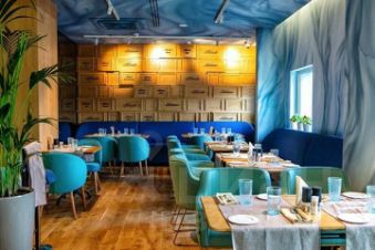 Инфраструктура БЦ — ресторан Черетто, кофейня, банкоматы, рядом супермаркет "Азбука Вкуса" и рынок-гастромаркет "Ленинский"