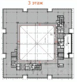 3 этаж - 1850 м2, расчетная вместимость - 182 рабочих места.