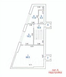 Надстройка 96,6 м2, высота полков - 2,21 м.