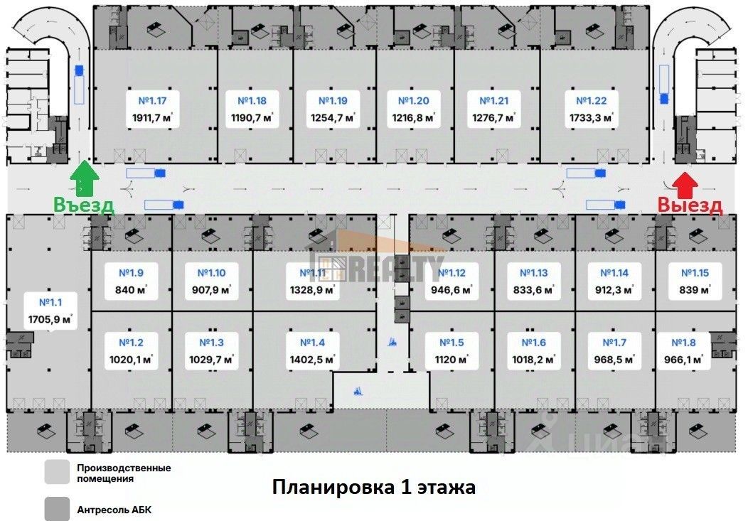 Арт. 117547734 Продается помещение  производственный блок  1018,2 кв.м на первом этаже, в многоэтажном производственном здании формата Light Industrial общей площадью 133 700 кв.м.