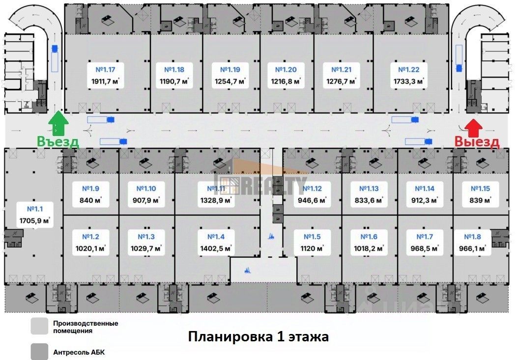 Арт. 117547721 Продается помещение производственный блок 833,6 кв.м на первом этаже, в многоэтажном производственном здании формата Light Industrial общей площадью 133 700 кв.м.