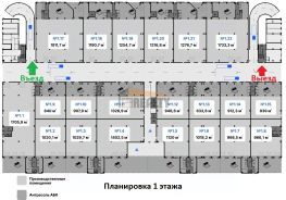 Помещение состоит из производственного блока и АБК на антресоли (расположенной на отметке +4 метра).