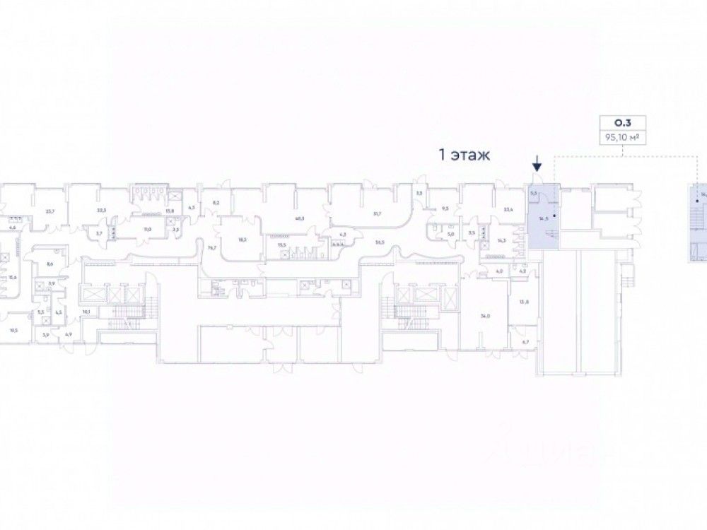. 1 и 2 этаж 28 этажного жилого дома, площадью 95,1 м2. Отдельный вход со двора, помещение в двух уровнях, высота потолков 5,5 м.