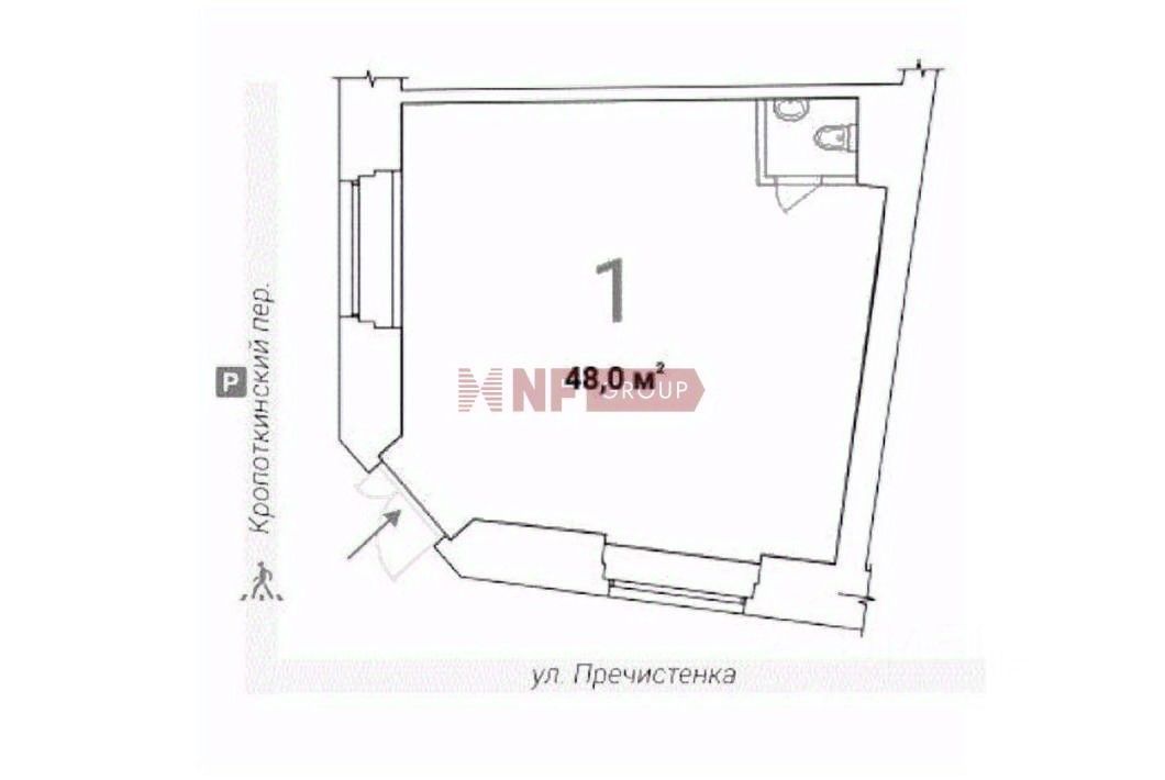 Лот: 37122. Помещение свободного назначения формата Street Retail в ЦАО Москвы. 8 минут пешком до станции метро Парк Культуры. Первая линия домов. Активный пешеходный трафик. Сложившееся торговое окружение вокруг.