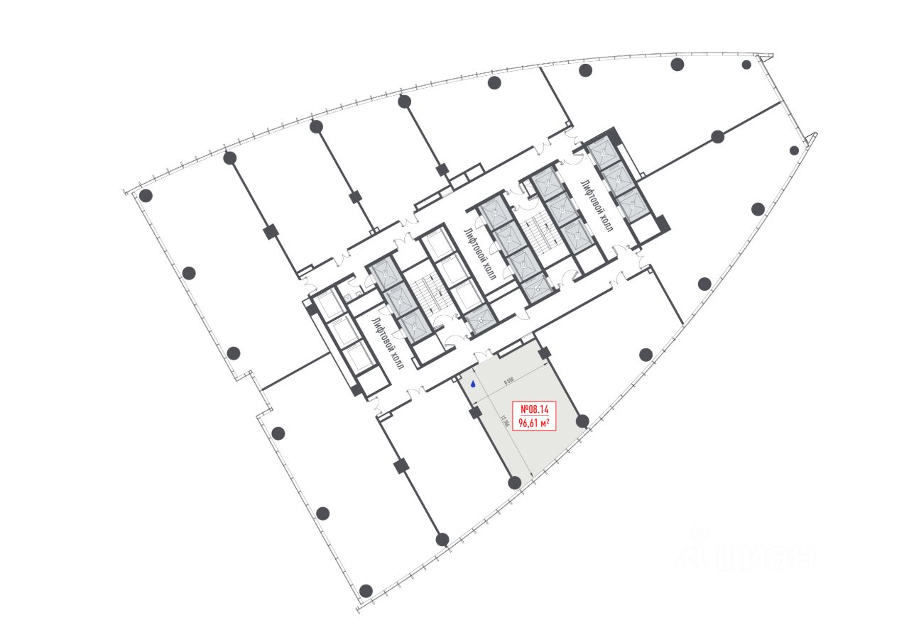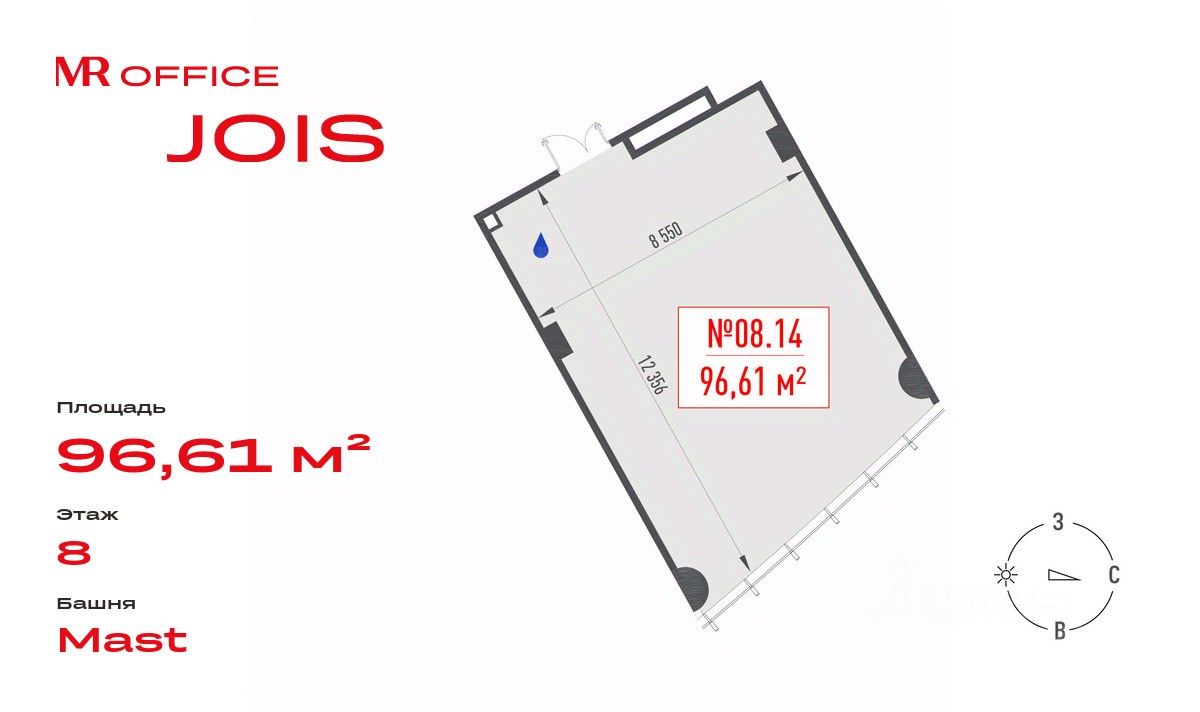Предлагается офисное помещение 96.61 м² на 8 этаже БЦ Jois.
