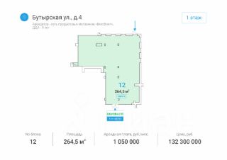 Предлагается на продажу помещение на улице Бутырская, САО, г. Москва. Шаговая доступность от ст. метро Савёлоская, Савёловского ж/д вокзала и платформы МЦД — менее 1 минуты пешком. Интенсивный пешеходный поток. Развитая инфраструктура, крупный жилой район. Отличная пешеходная и транспортная доступность. Высокий рекламный потенциал и возможность размещения вывесок на фасаде.