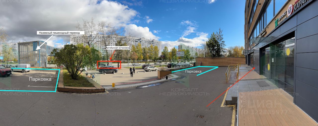 По соседству — автобизнес, центр карате, офисные помещения и бизнес-центр, что формирует стабильный поток офисных сотрудников и посетителей.