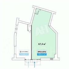 В помещение отдельный вход с улицы, открытая планировка, витринное остекление, высота потолков 4.2 м, отделка от арендатора.