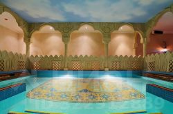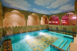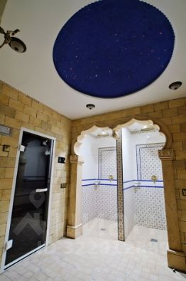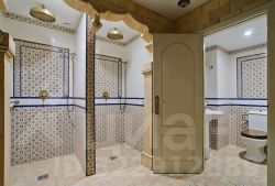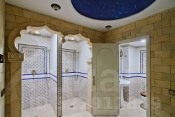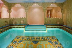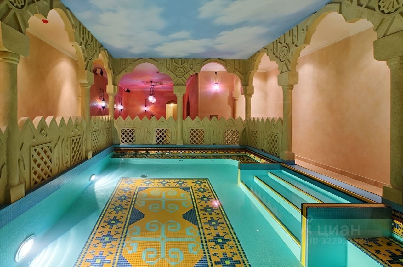 Планировка: гостиная на 15 чел., бассейн 6х4 с противотоком, гидромассажем и гейзером, турецкая парная на 10 чел., 2 комнаты отдыха, 4 душевых, 3 с/узла, полностью оборудованная кухня.