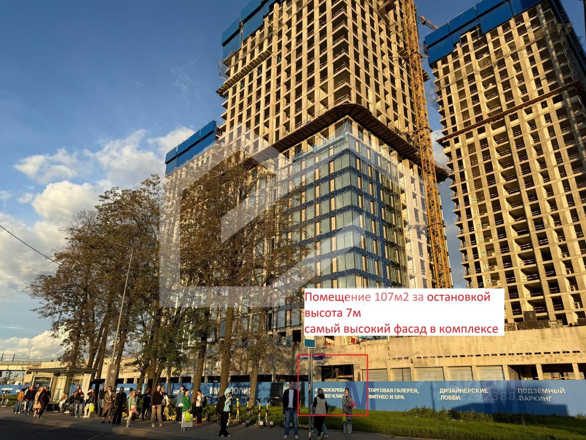 1012414 . Предлагаем помещение свободного назначения формата Street Retail, площадью 107,4 кв. м, расположенное на первом этаже жилого дома в ЖК "Мираполис". Без комиссии для покупателя.
