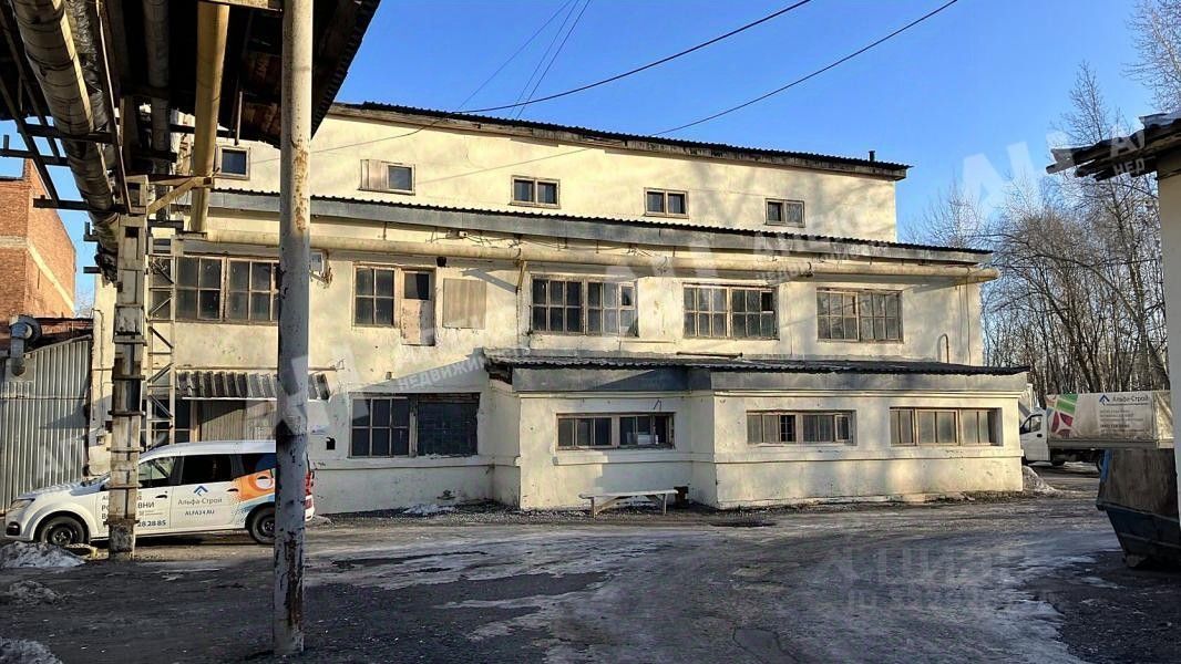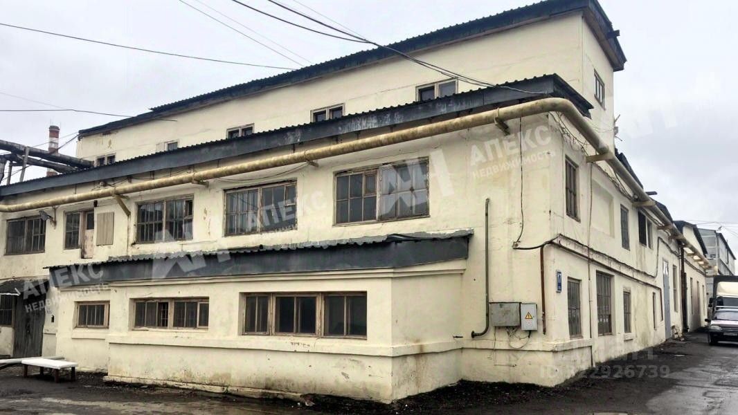 Отдельно стоящее здание, 3 этажа (основная часть 1-й этаж), год постpoйки 1957г. Материал стен кирпич, железобетонные перекрытия, подвала нет. Высота потолков в производственном помещении 6 м, в офисной части от 2.5м.
