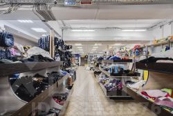 Сейчас в помещении временный арендатор - социальный магазин одежды и обуви. Ранее в данном помещении располагался большой ресторан и пиццерия.