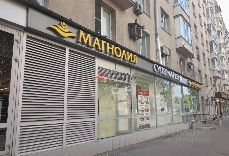 Продажа торгового помещения 583,6 м2 с арендатором супермаркет "Магнолия" на ул. Авиамоторная, д. 28/6 (10 минут пешком от метро Авиамоторная). 1 линия домов.