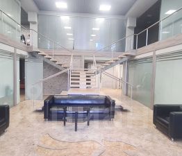 Помещение в 2х уровнях, 1й эт. 228 квм., 2й эт. 150 квм. Высота потолка 2,8 метра. 10 кабинетов (стеклянные перегородки), кухня, 2 туалета, холл, серверная, кладовая.